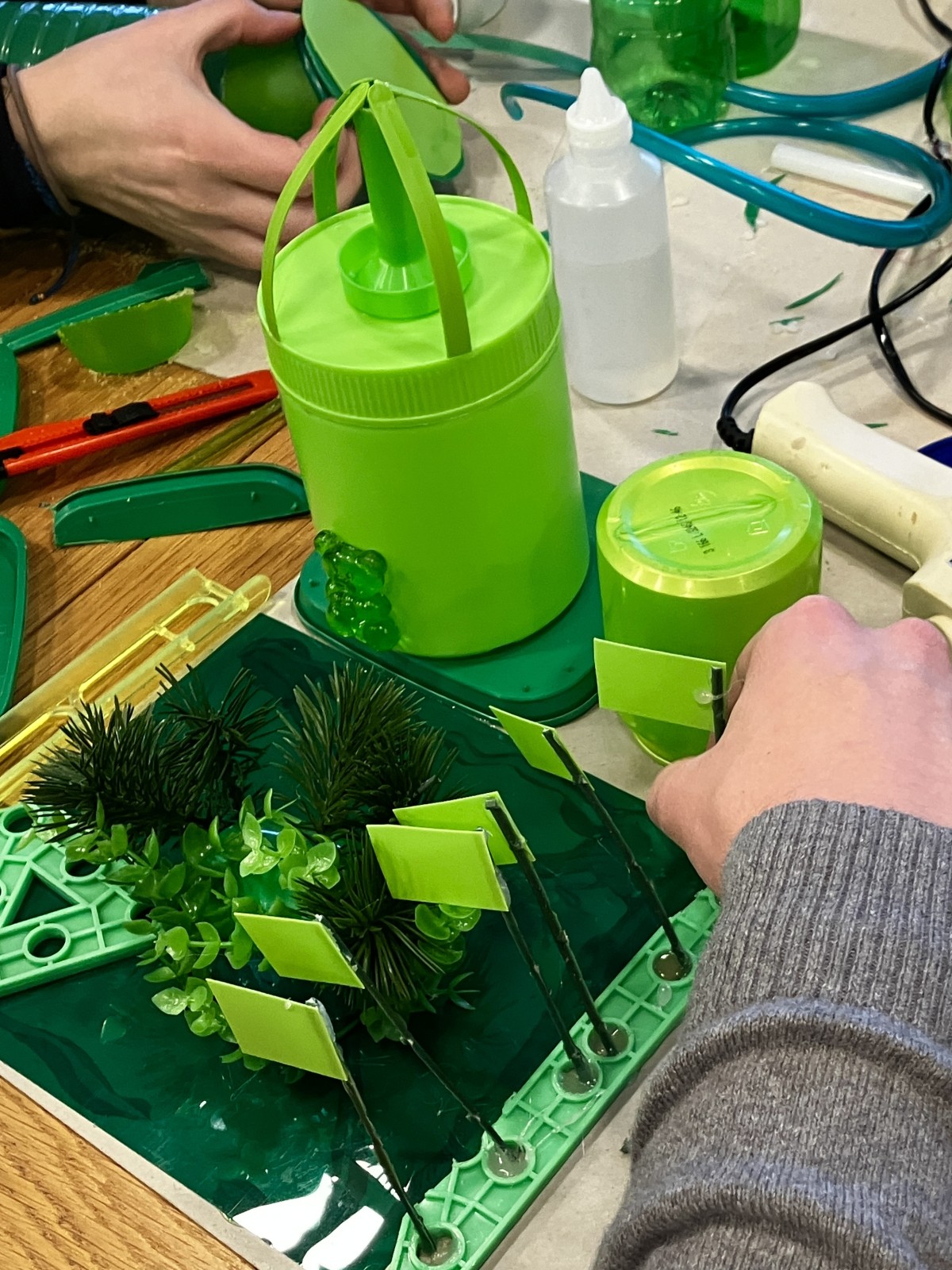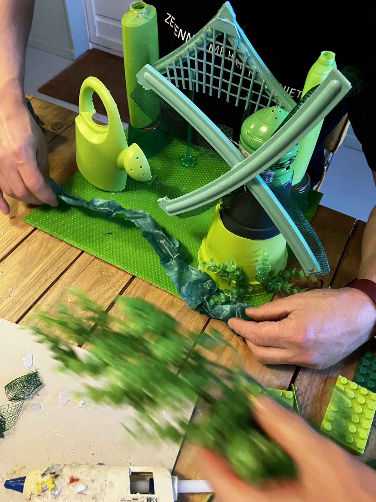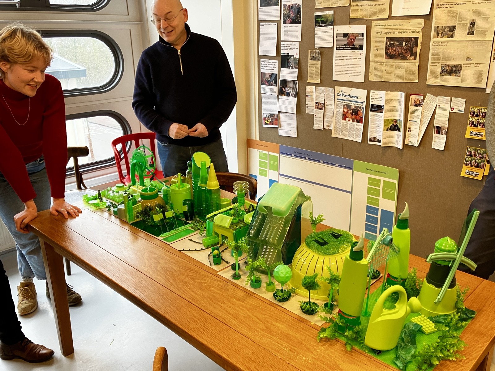 Duurzaam Den Haag, met hun missie voor een rechtvaardige energietransitie en het vergroenen van versteende wijken wilde graag het jaar op een duurzame en creatieve wijze afsluiten. Ze besloot de handen ineen te slaan met De Afvaljuf, na overleg ontstond het idee om gezamenlijk een stad te bouwen van groen plastic afval, een symbool van hergebruik en creativiteit. De medewerkers gingen in vijf groepen aan de slag, elk verantwoordelijk voor het bouwen van een specifiek deel van de gemeente Den Haag.