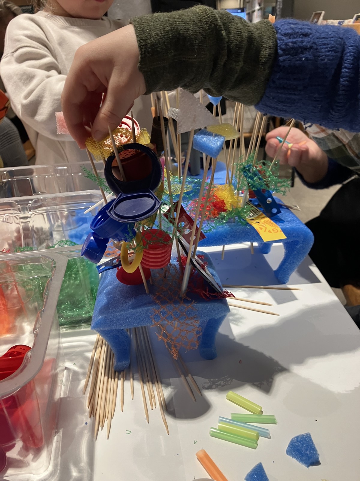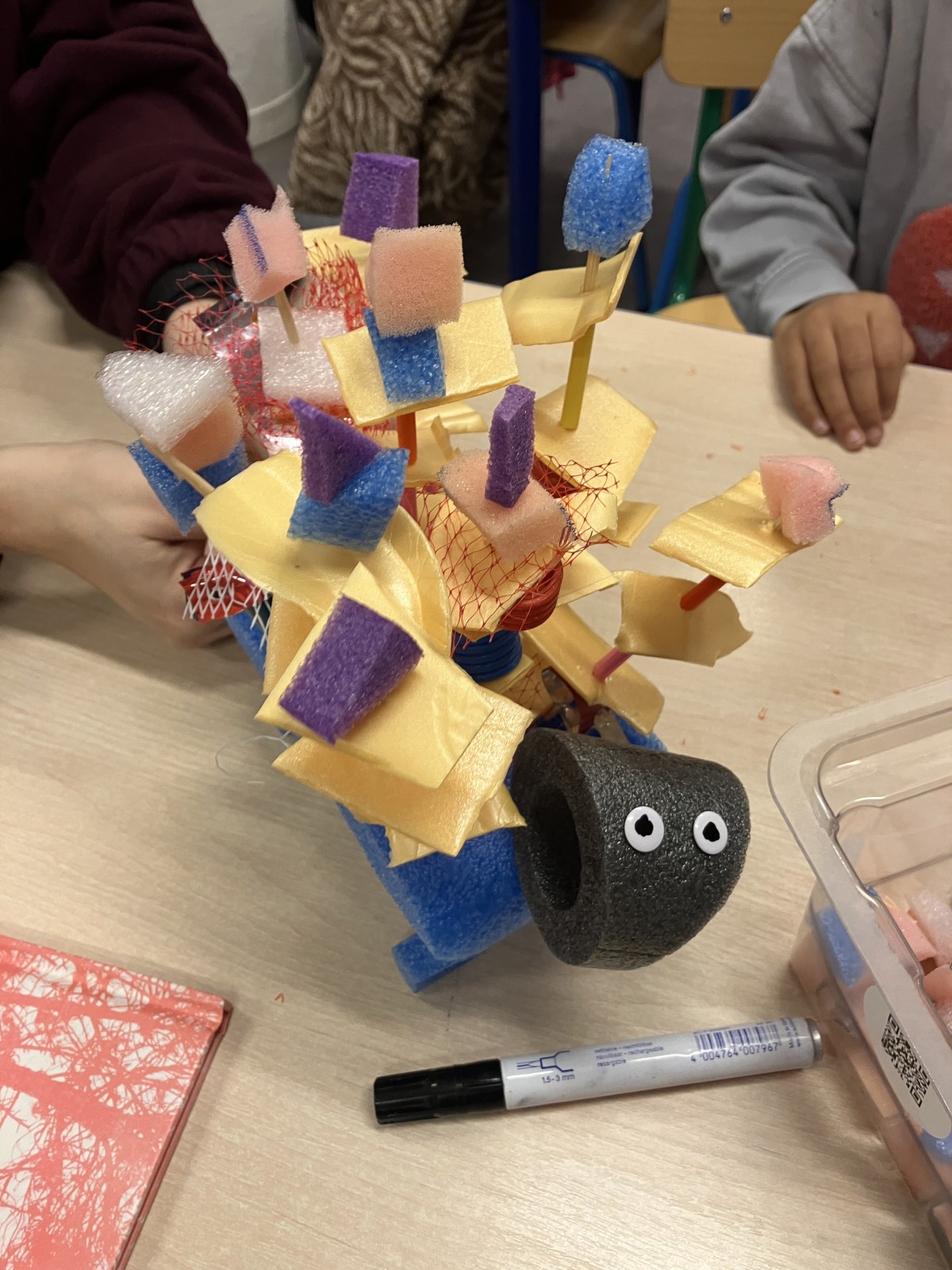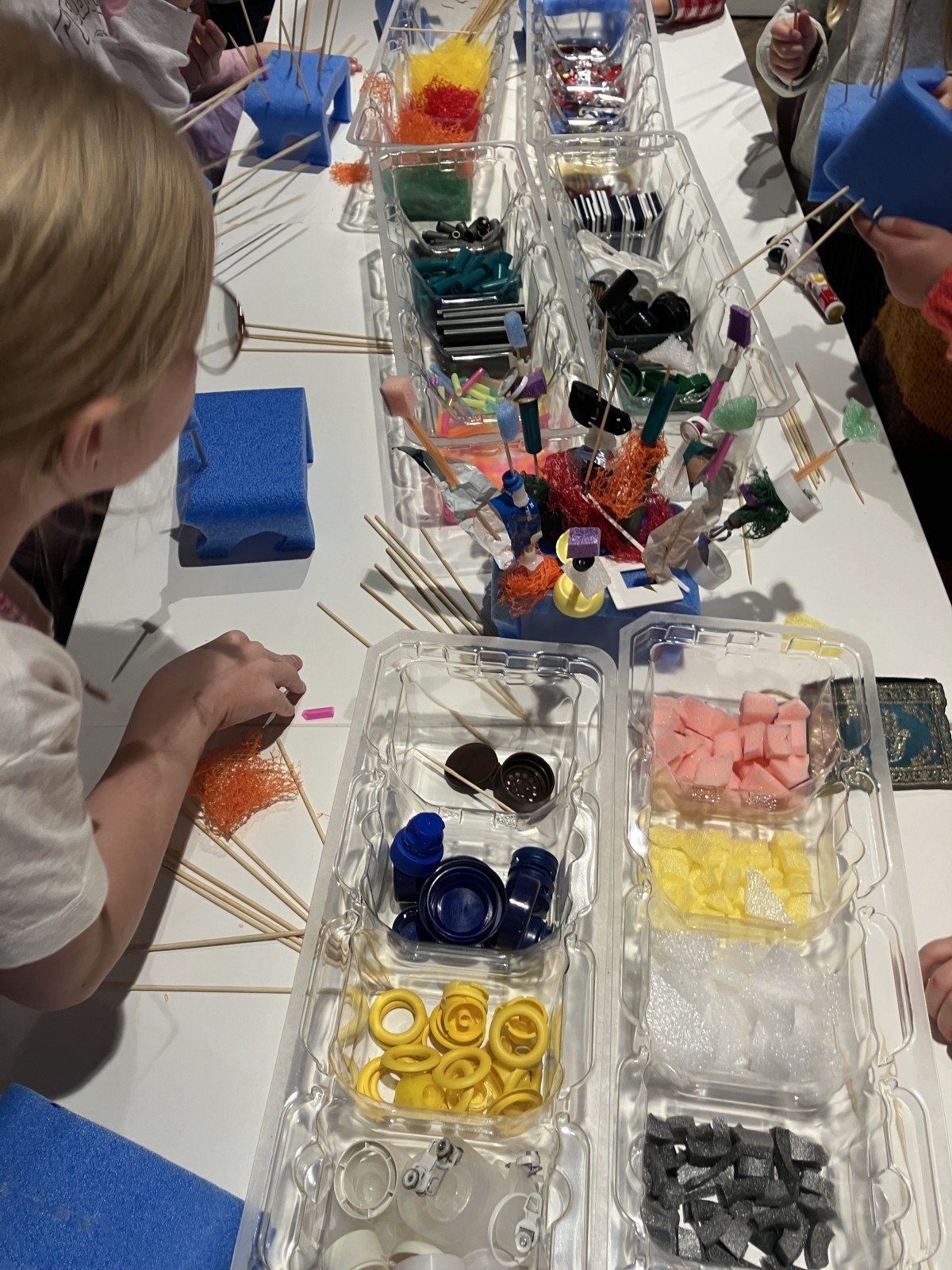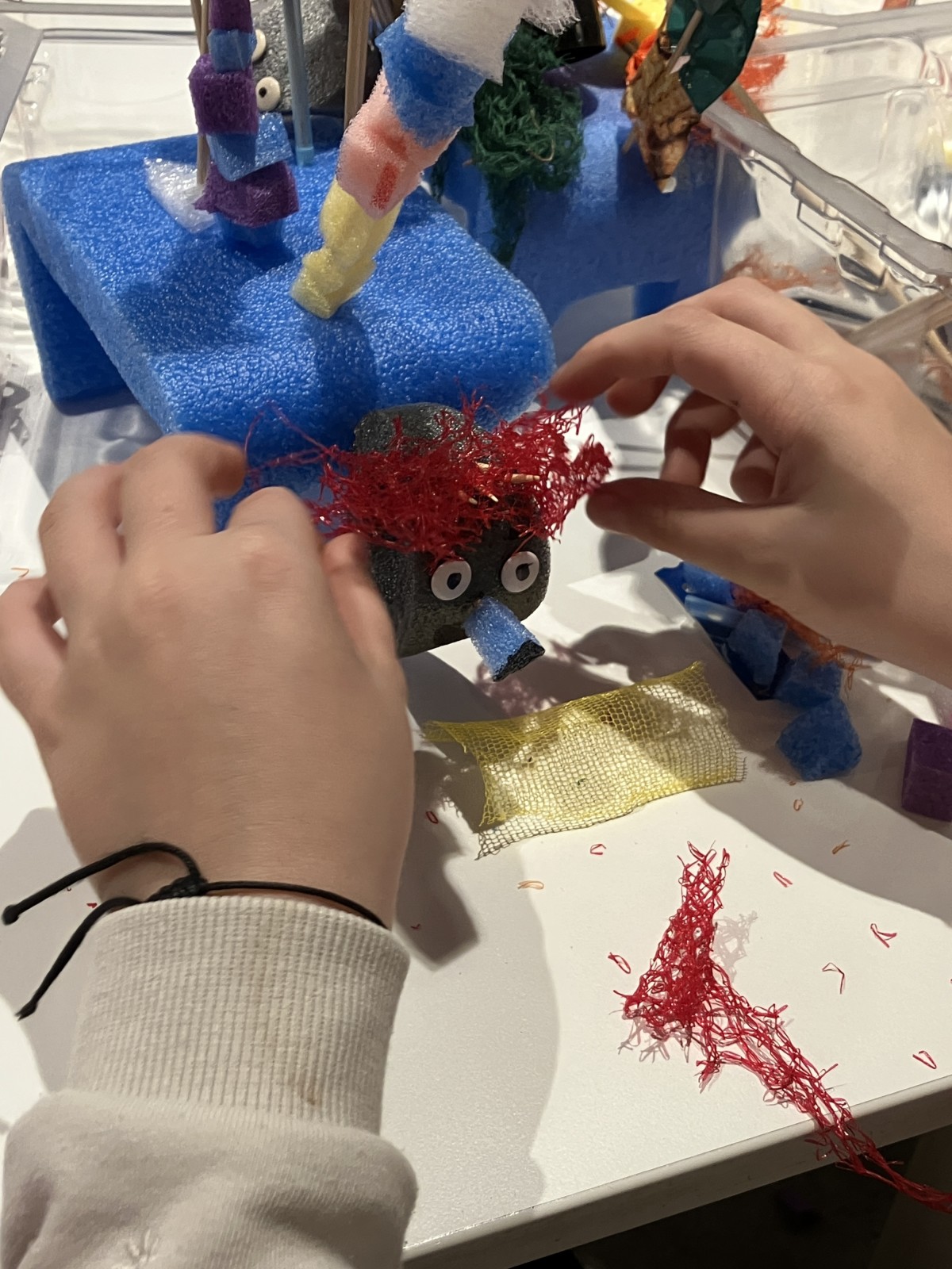 Daarna gaan de kinderen — in de leeftijd van 3 tot ongeveer 7 jaar — zelf aan de slag. Met plastic afval maken ze hun eigen egel. Elk kunstwerk is anders, net als de kinderen die meedoen.
