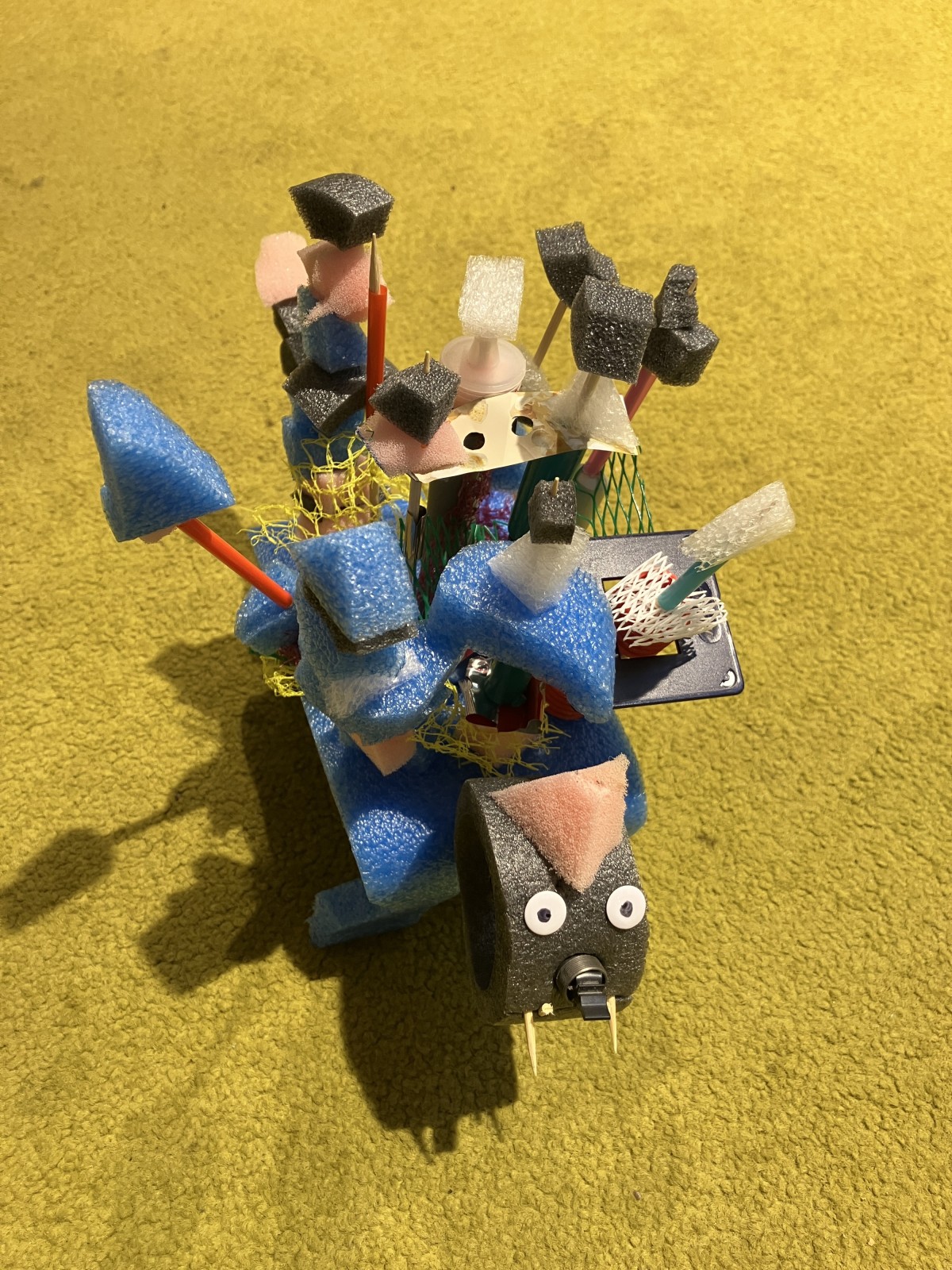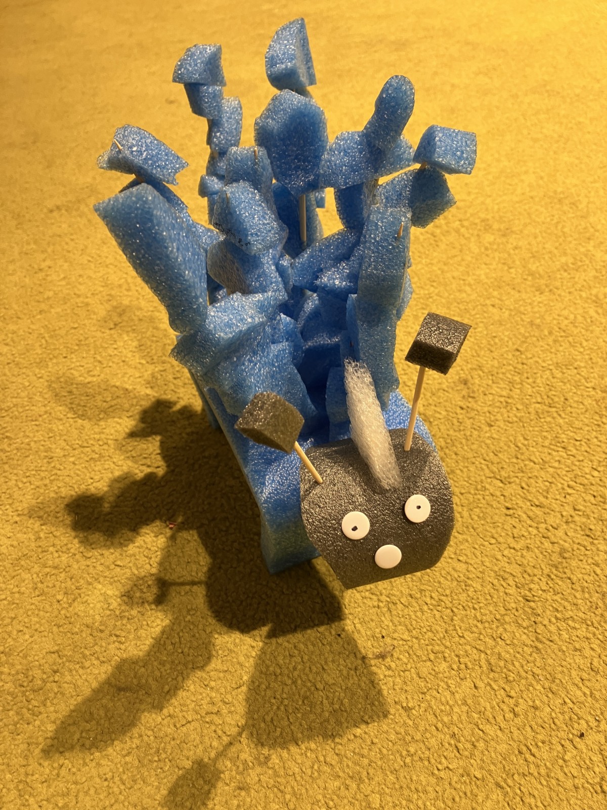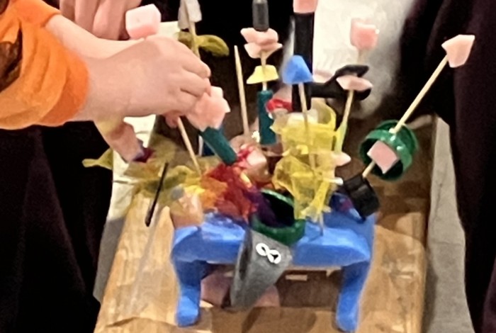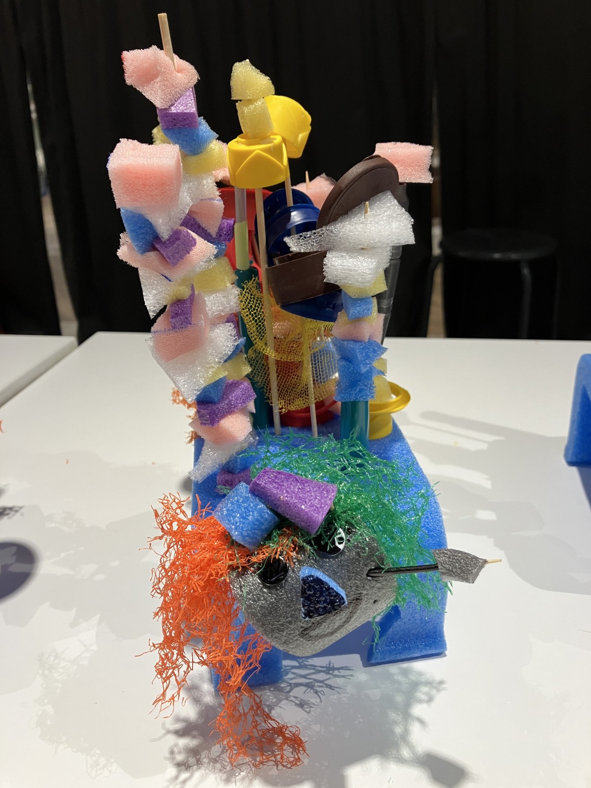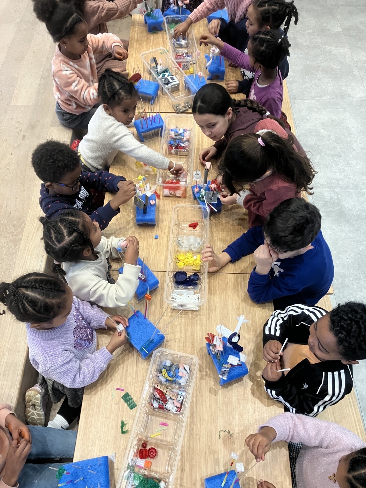 Daarna gaan de kinderen — in de leeftijd van 3 tot ongeveer 7 jaar — zelf aan de slag. Met plastic afval maken ze hun eigen egel. Elk kunstwerk is anders, net als de kinderen die meedoen.