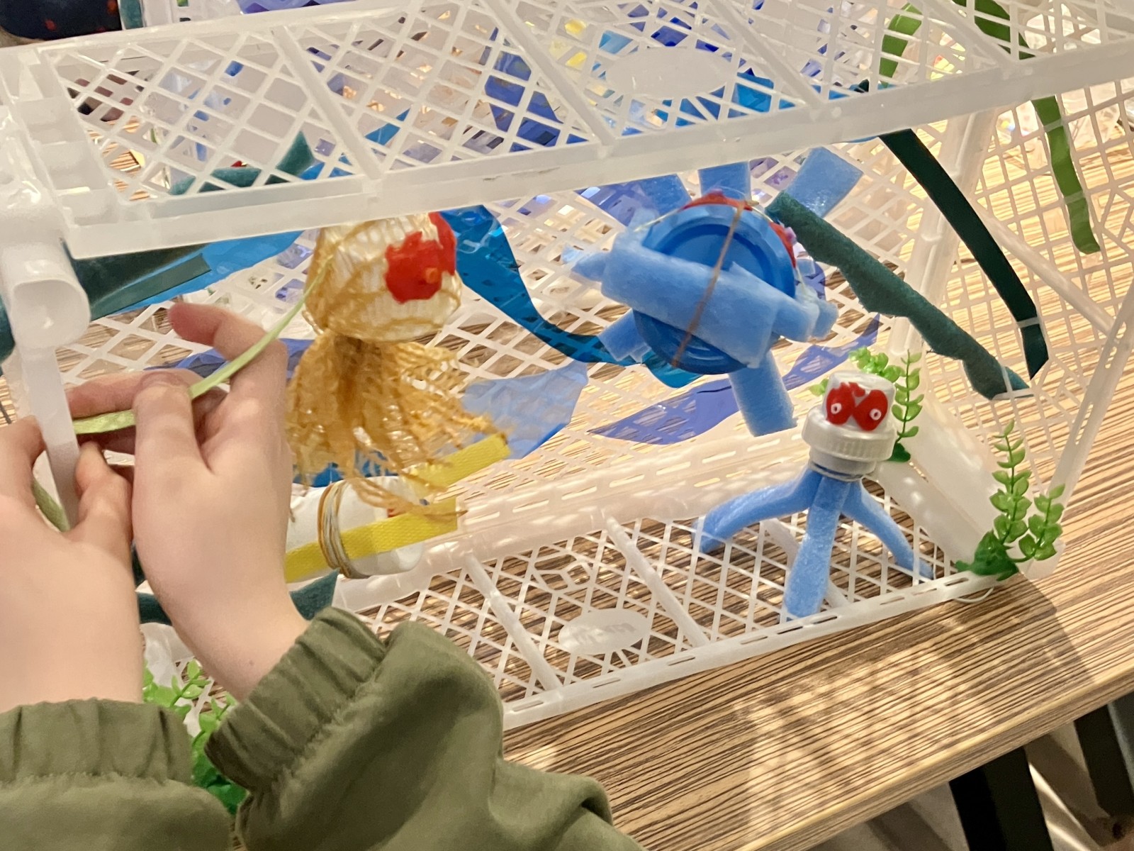 Voor de workshop had ik een grote hoeveelheid plastic afval meegenomen, waarmee de kinderen enthousiast aan de slag gingen. Ze maakten creatieve knutselprojecten en leerden op een speelse manier over het probleem van plasticvervuiling.