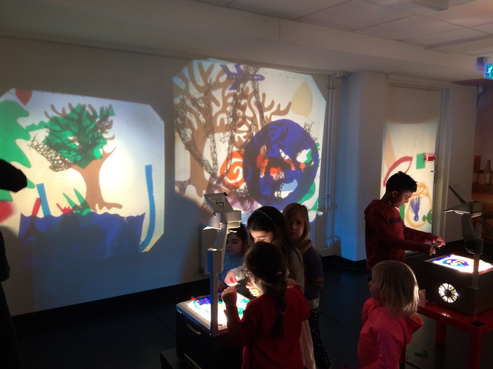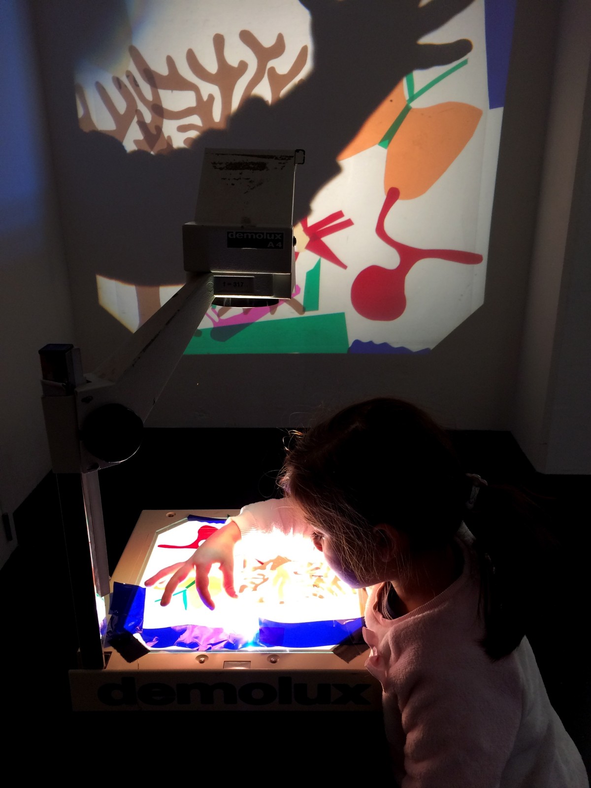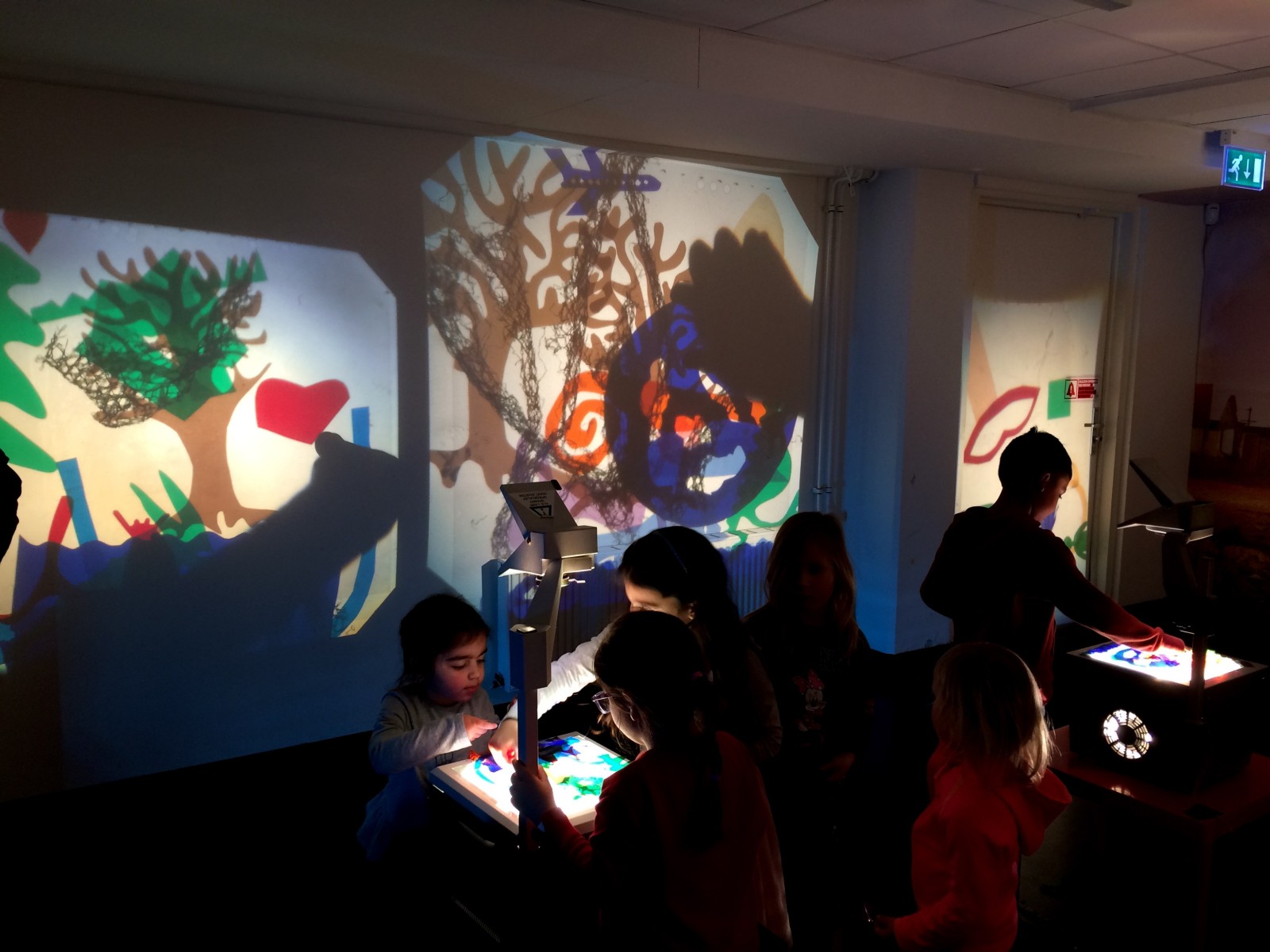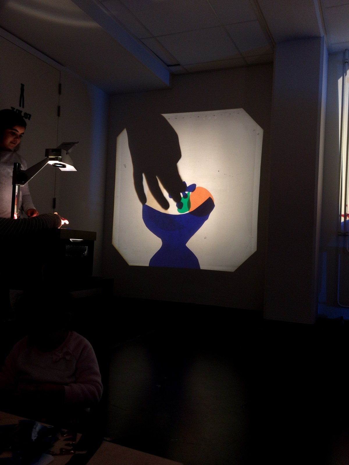 Op 28, 29 en 30 december bracht ik een aantal oude overheadprojectoren mee naar Theater Dakota voor een bijzondere workshop. De theatertechnicus had oude filters van de lampen bewaard, en die gebruikten we als materiaal om verhalen mee te vertellen.