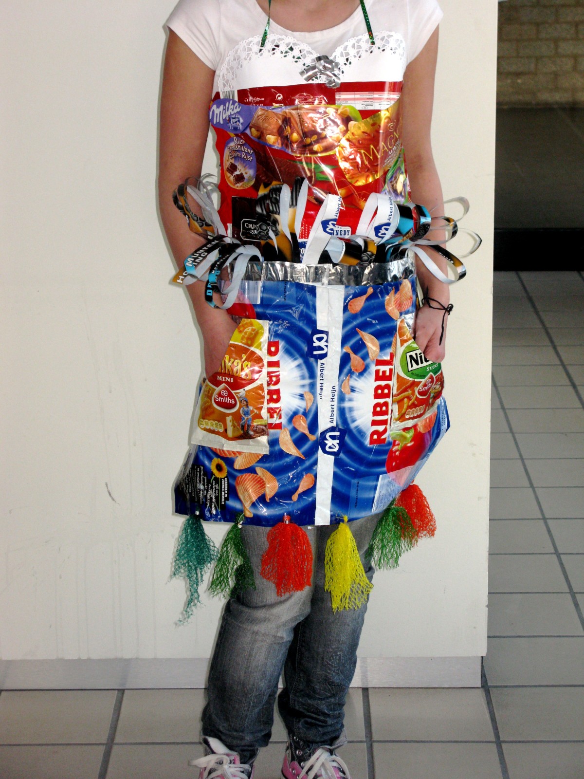 De Afvaljuf heeft de voorkeur om (plastic) afval van de lokatie te gebruiken. Mocht er niet genoeg aanwezig zijn dan brengt Carolien een deel van haar eigen voorraad mee.